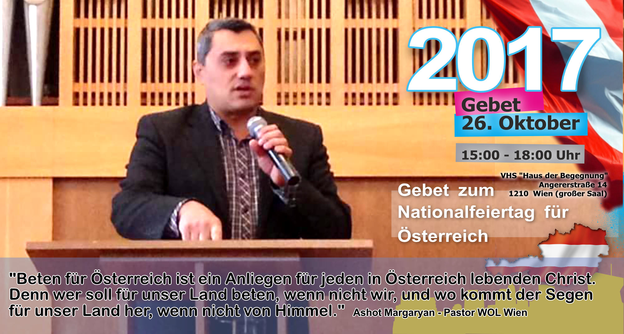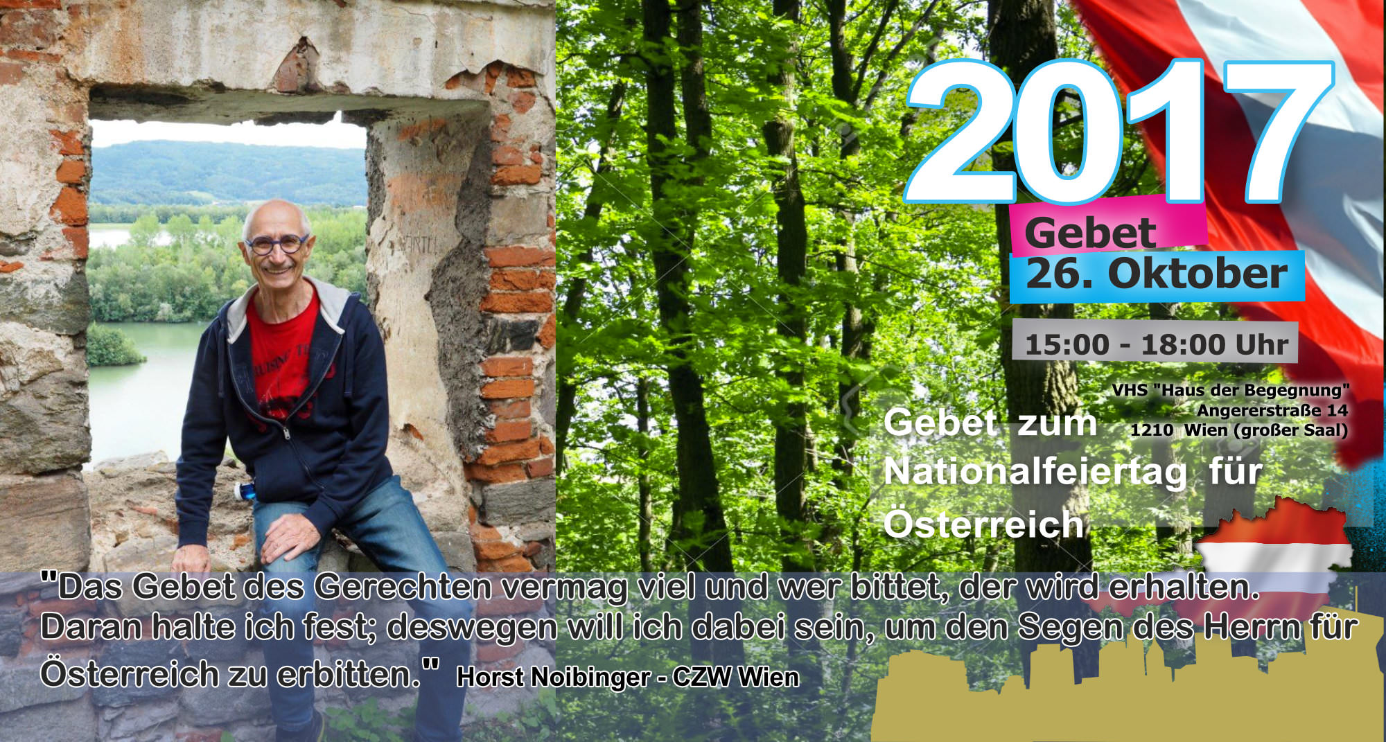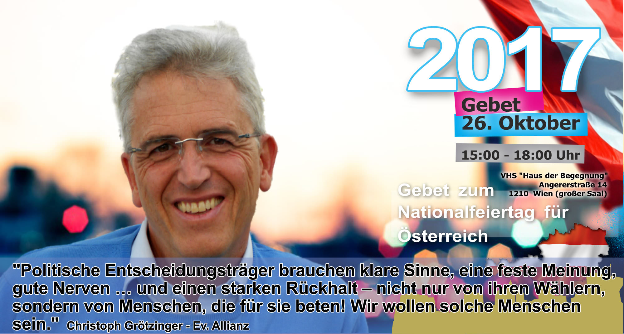 Treffpunkt: Stephansplatz - unter dem Motto "Suchet der Stadt Bestes" beten wir für "alle in Obrigkeit und Verantwortung" vor dem Rathaus, den Parteizentralen, am Heldenplatz, Parlament, Universität, aber auch gegen Antisemitismus (Judenplatz)